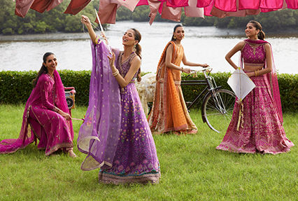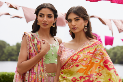 Discover elevated, refined prints created in-house with immaculate tailoring and steal the show this festive season! Tinged with the signature FTA whimsy and romance, the Safiya ensemble is impossible to resist! A canvas of refreshing kiwi green crepe silk, is printed with uplifting florals in ivory and eye-catching shades of pastel pink and purple.